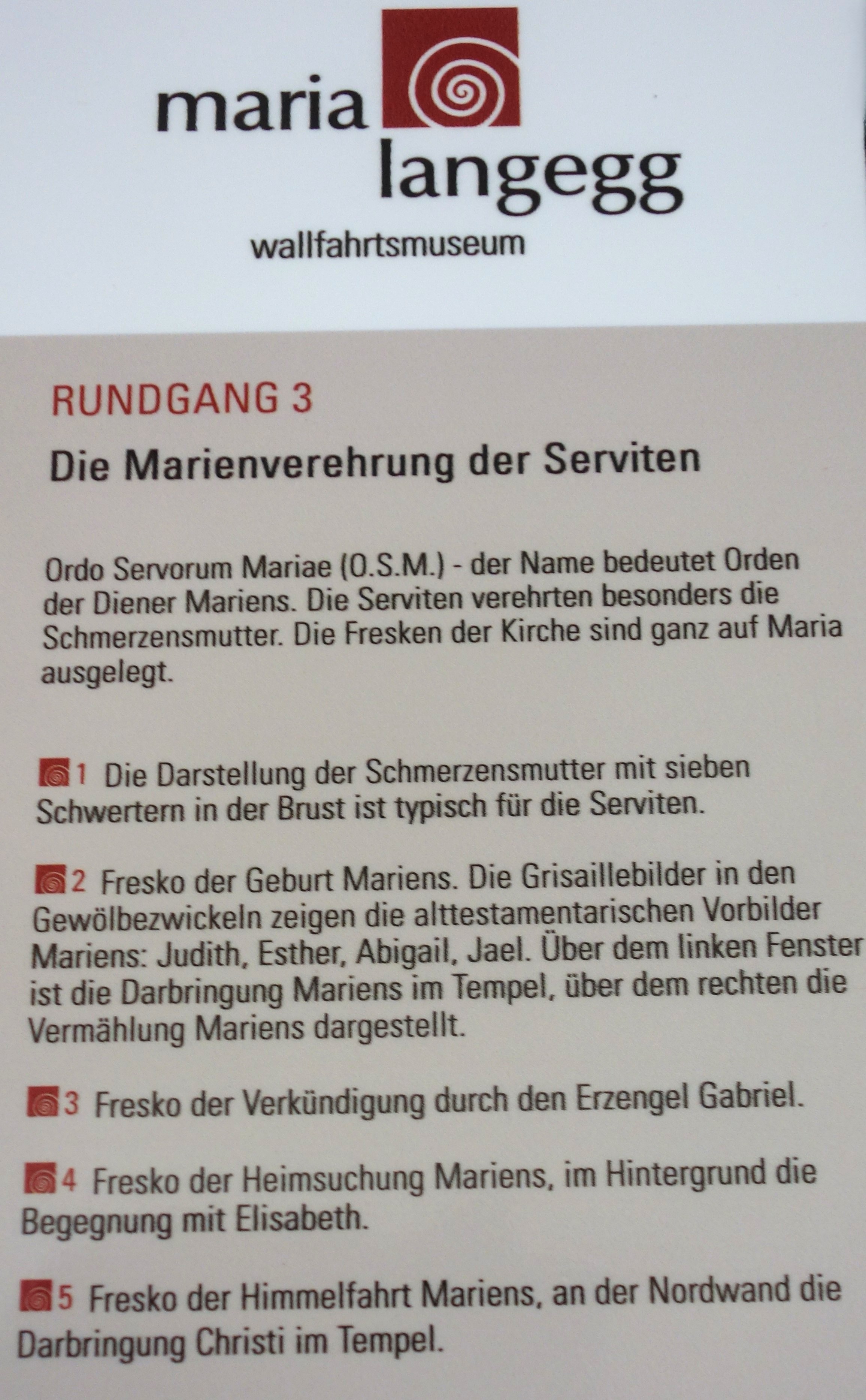Abb.: Marienverehrung des Servitenordens, hier am Beispiel der Kirche Maria Langegg (Österreich). Quelle: Schautafel beim Wallfahrtsmuseum Maria Langegg (Stand 2025). Foto: Tobias Liebert. Zum Vergrößern bitte anklicken.