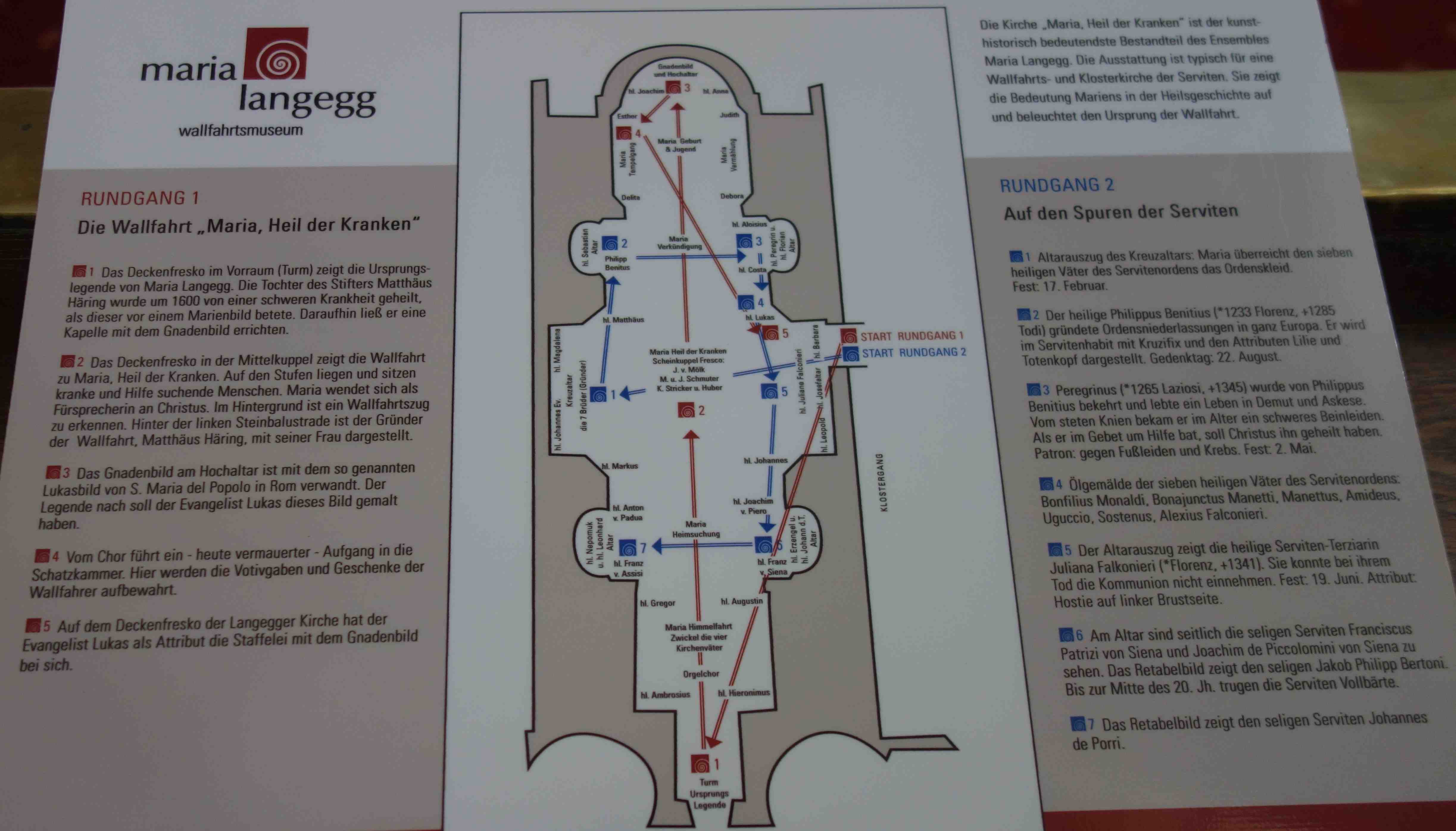 Abb.: Das medial-künstlerische Objekt- und Bildprogramm der Kirche Maria Langegg (Österreich). Quelle: Schautafel des Wallfahrtsmuseums (Stand 2025). Foto: Tobias Liebert. Zum Vergrößern bitte anklicken.