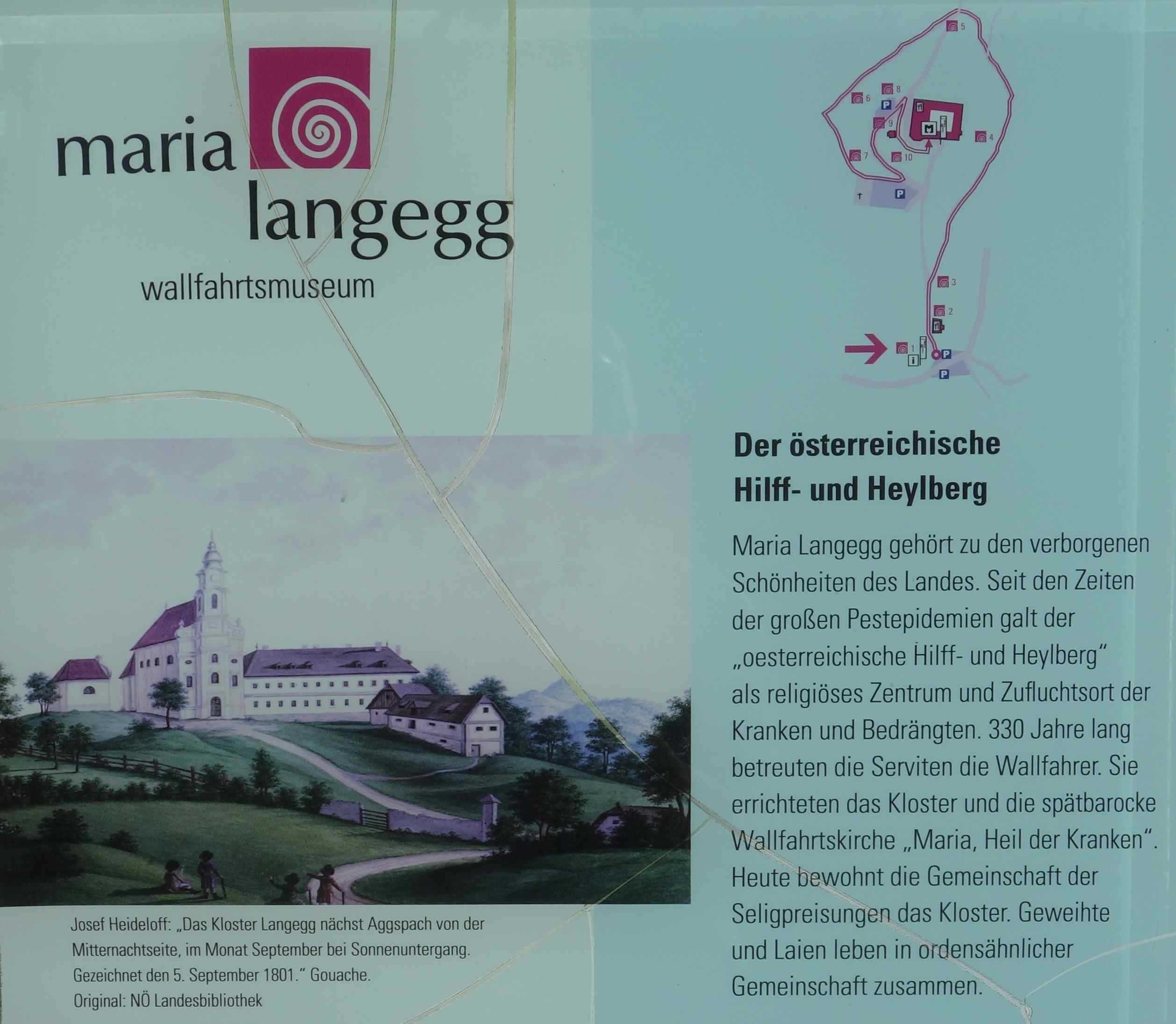 Abb.: Der „Hilff- und Heylberg“ in Maria Langegg (Österreich). Quelle: Schautafel beim Wallfahrtsmuseum Maria Langegg (Stand 2025). Foto: Tobias Liebert. Zum Vergrößern bitte anklicken.