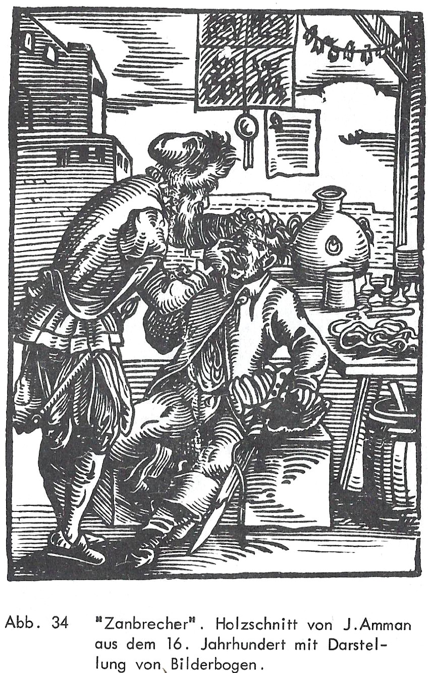 Das „selbstständige[n] Gewerbe der Bader“ beispielsweise vollzog den „Aderlass“ – eine seinerzeit zentrale Behandlungsmethode – und war deshalb an seiner medialen „Popularisierung“ durch „Holzschnittdarstellungen“ bzw. „Kalender“ interessiert (Deneke 1969, S. 17).
