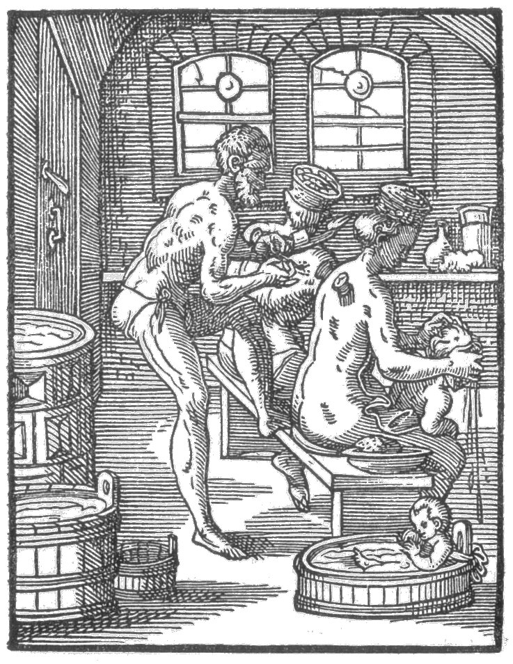 Abb.: Beispiel „Bader“.Holzschnitt aus: Jost Amman (1539-1591): Eygentliche Beschreibung aller Stände auff Erden hoher und nidriger, geistlicher und weltlicher, aller Künsten, Handwerken und Händeln … (erstmals Frankfurt am Main 1568; auch bekannt als: Das Ständebuch). Quelle: Wikimedia Commons. Public Domain.