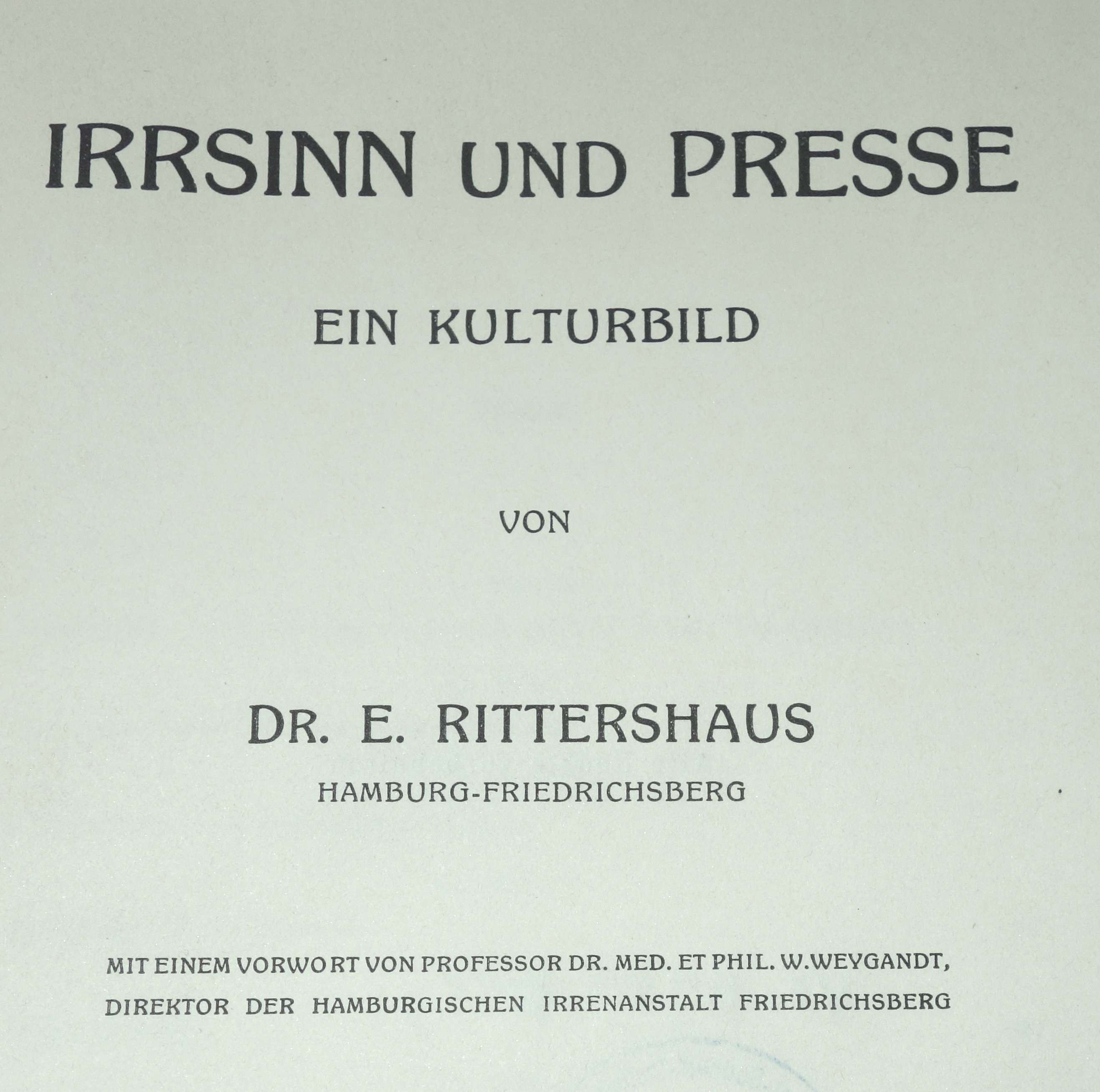 Ein Hamburger Arzt dokumentierte und kommentierte 1913, was und wie sieben Zeitungen aus der Hansestadt über Psychiatrie bzw. Geisteskrankheiten einschließlich ihrer Verbindungen mit Selbstmorden, Alkoholismus, „psychischen Epidemieen (sic!), Aberglaube und Kurpfuscherei“ sowie Kriminalität berichteten. Dabei stellte er ein hohes Maß an Selektivität und Beurteilungsdefiziten der Presse fest, äußert aber für die medialen Sichtweisen auch Verständnis.