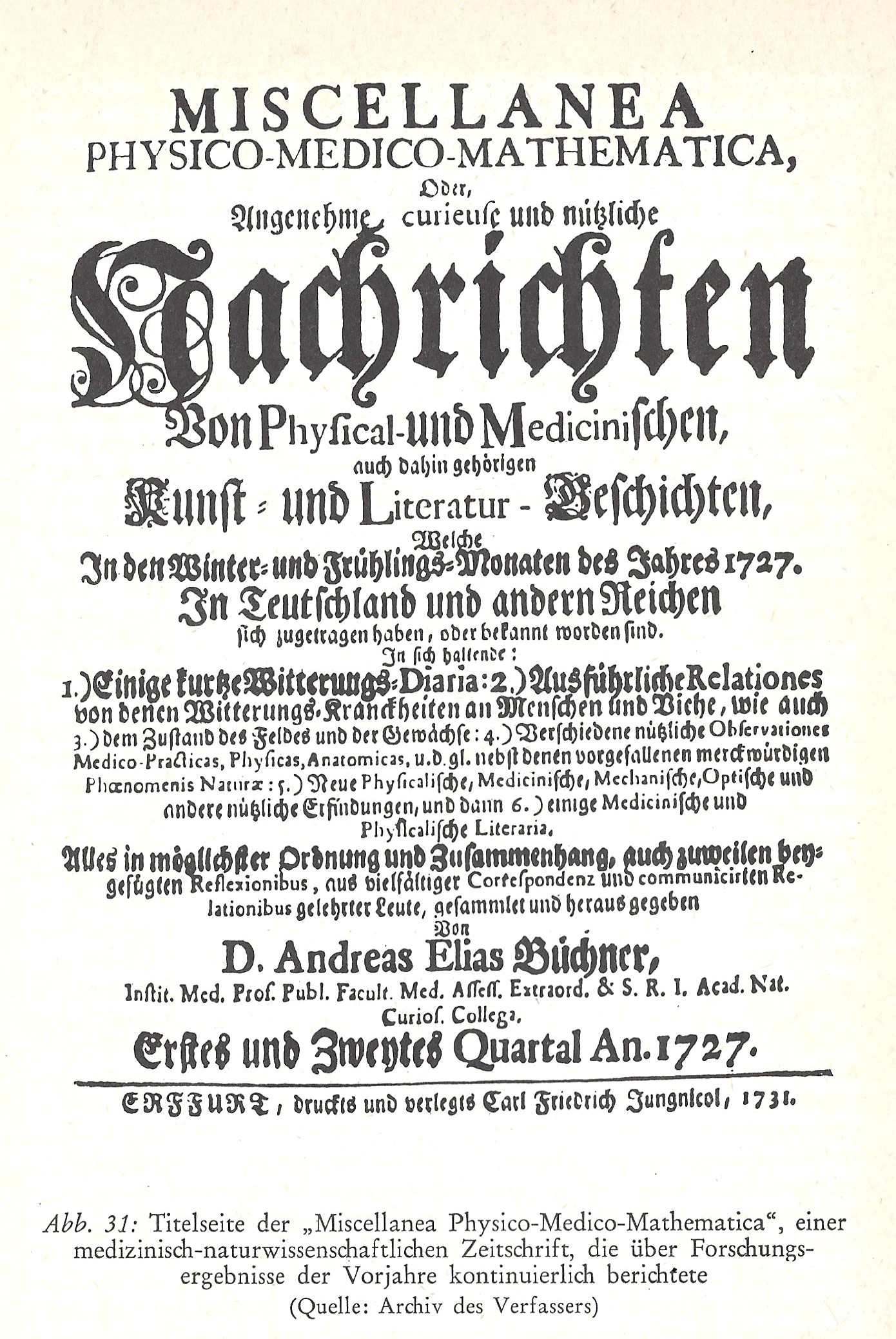 Typischer für das 18. Jahrhundert waren nun aber rein medizinische Fachblätter. Bäder führt in ihrer Dissertation von 1954 einige solcher an: