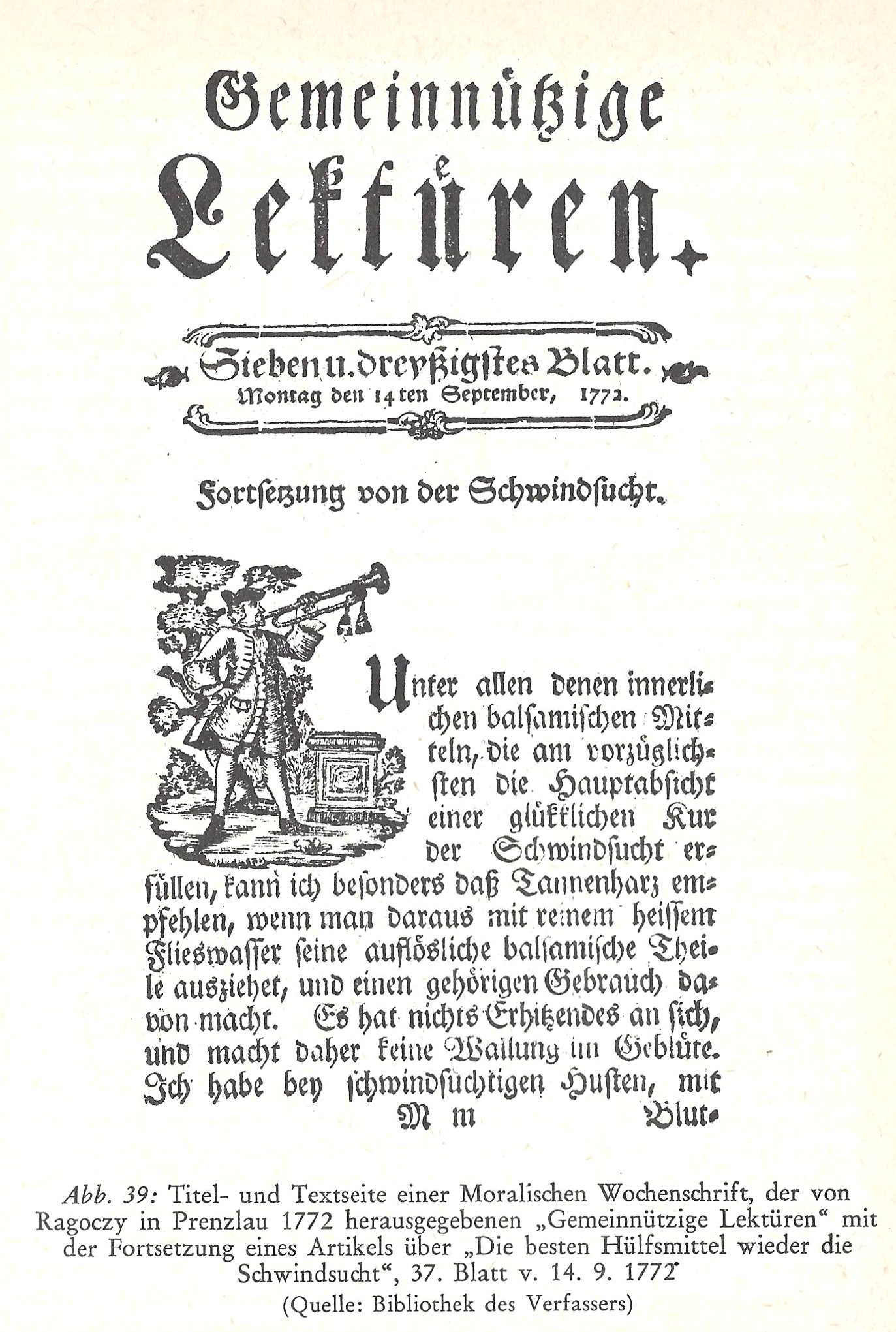 Abb.: Schwindsucht als Thema in einer Moralischen Wochenschrift von 1772. Quelle: Deneke 1969, S. 231.