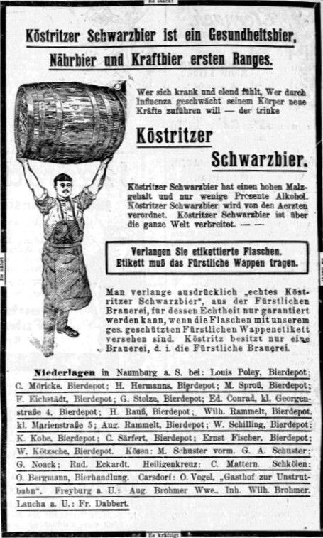 Zeitungsanzeige für „Gesundheitsbier“. Quelle: Naumburger Tageblatt 19.04.1908. Zum Vergrößern bitte anklicken.
